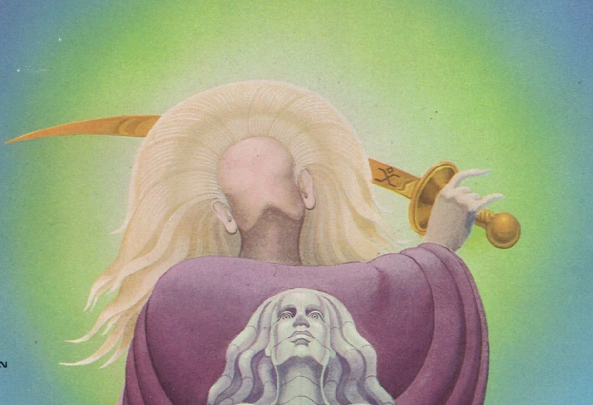 Mabelode the Faceless, also known as Mabelrode and the King of the Swords, is a Chaos Lord. He appears with his face perpetually in shadow, or simply with blank, featureless skin in place of a face. In Corum's World he is the most powerful Chaos Lord, yet in Elric's he is no more powerful than Arioch.